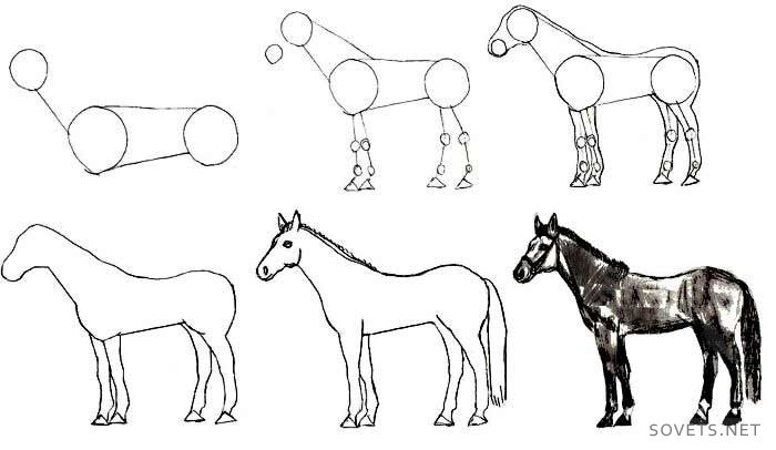 ![Рисование лошади поэтапно]()