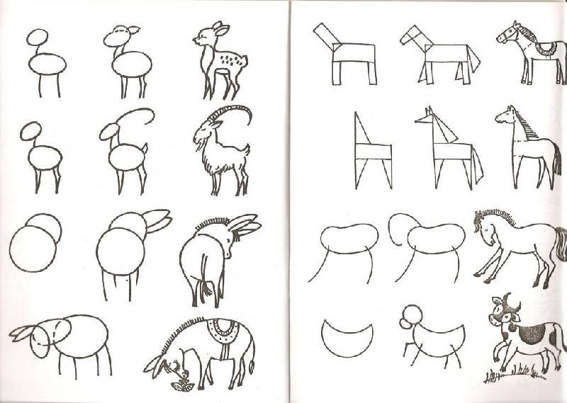 Простые схемы рисования животных