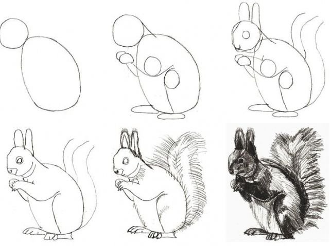 ![Поэтапное рисование белки]()