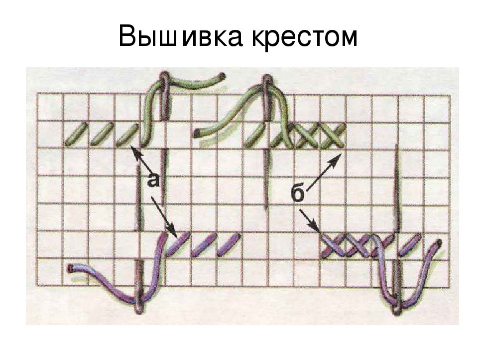 ![Техника выполнения вышивания крестиком]()