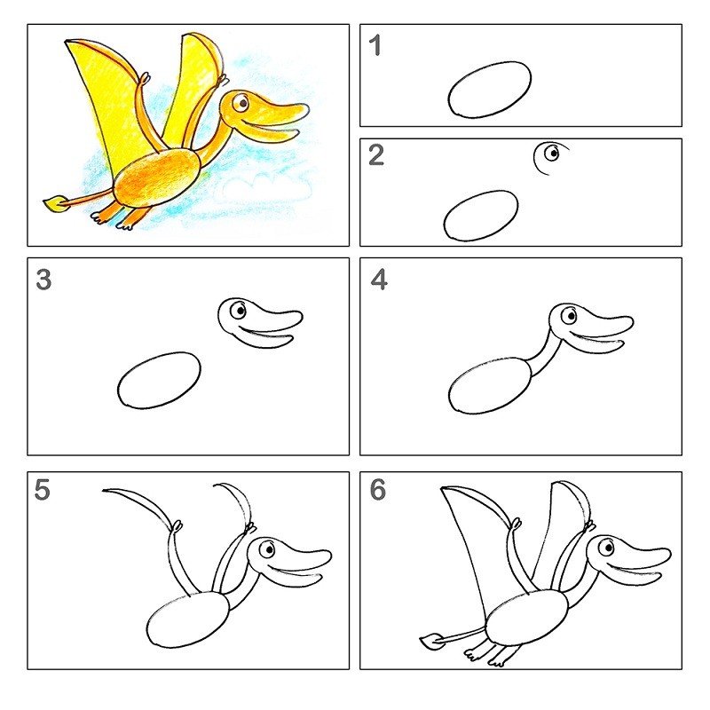 Динозавр пошаговое рисование для детей