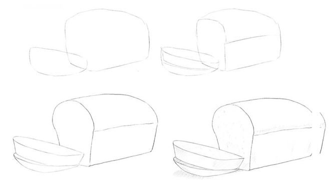 ![Поэтапное рисование хлебобулочных изделий]()