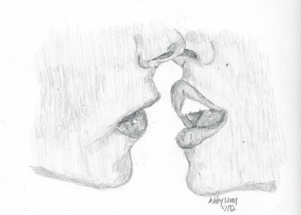 Поцелуй в губы рисунок карандашом