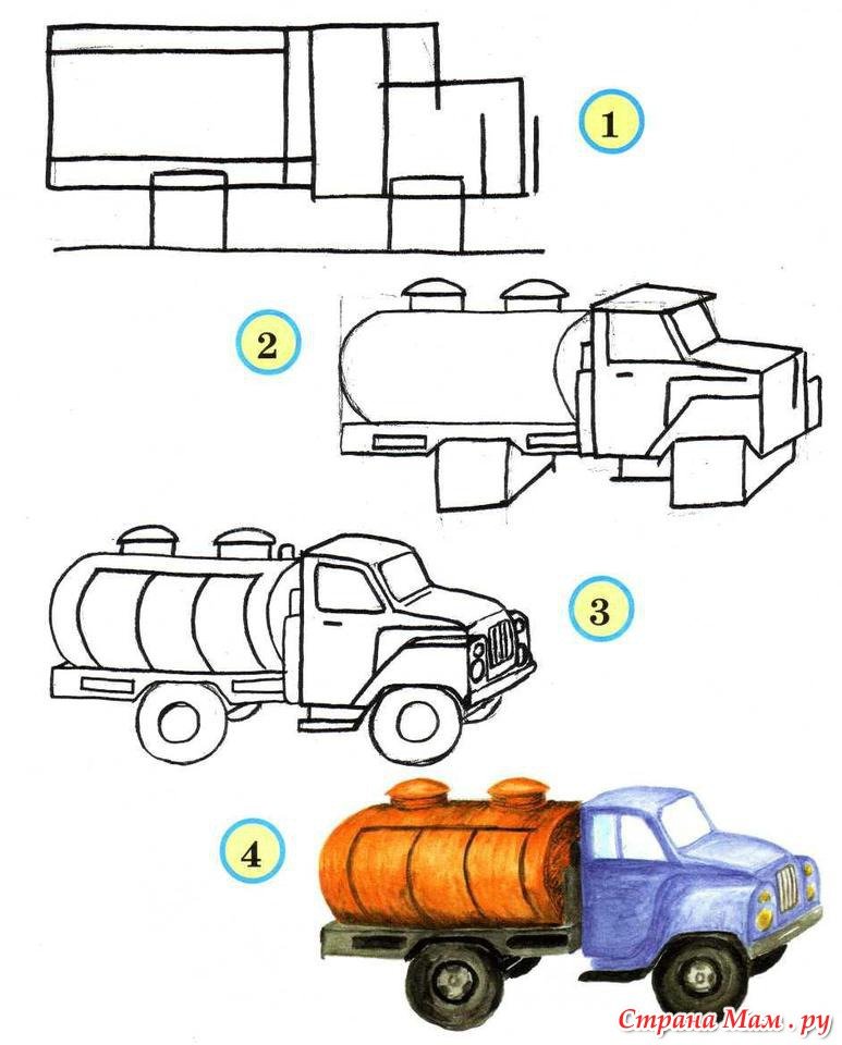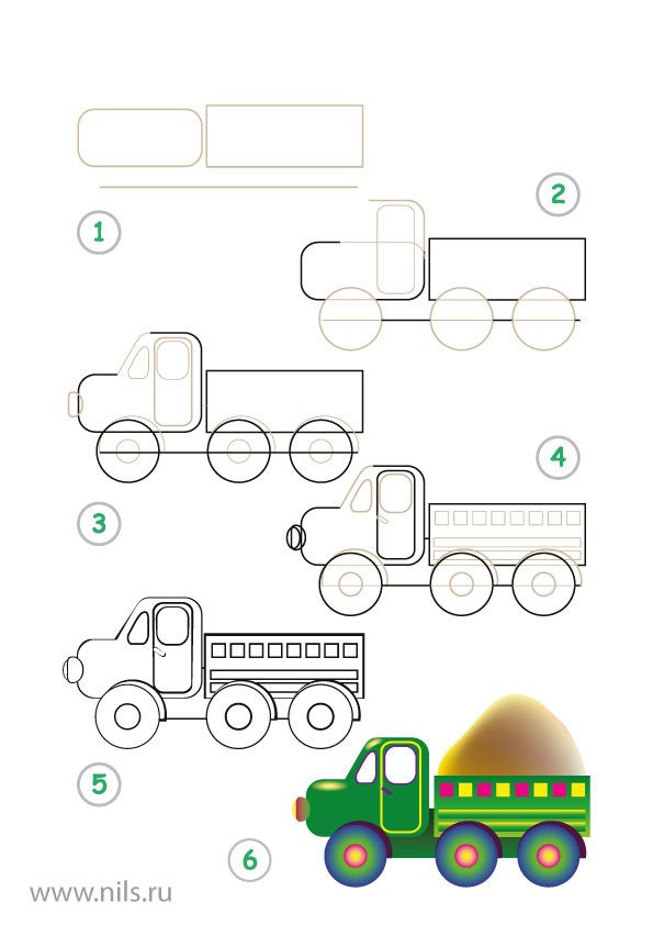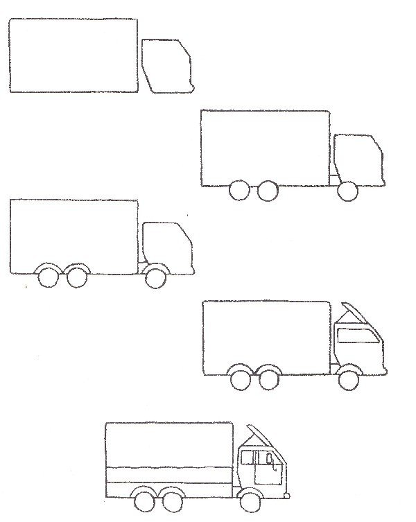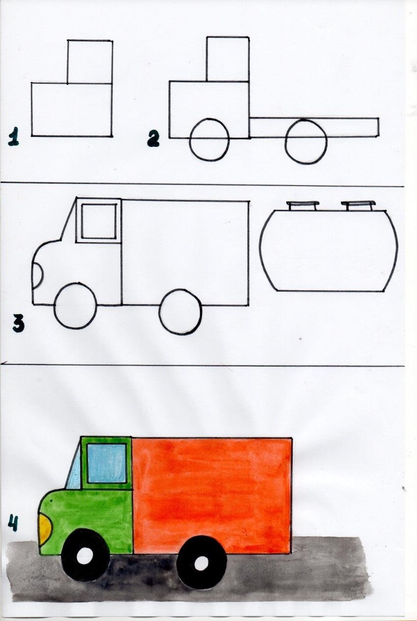 Схема рисования грузовика для дошкольников