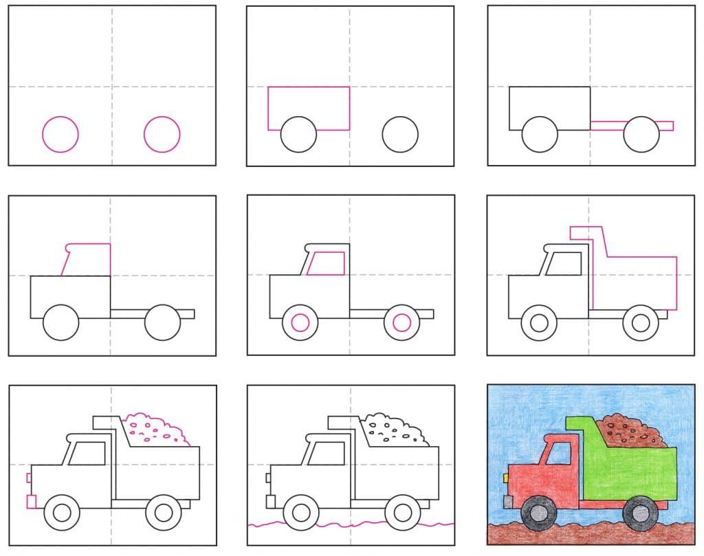 Этапы рисования грузовика для детей