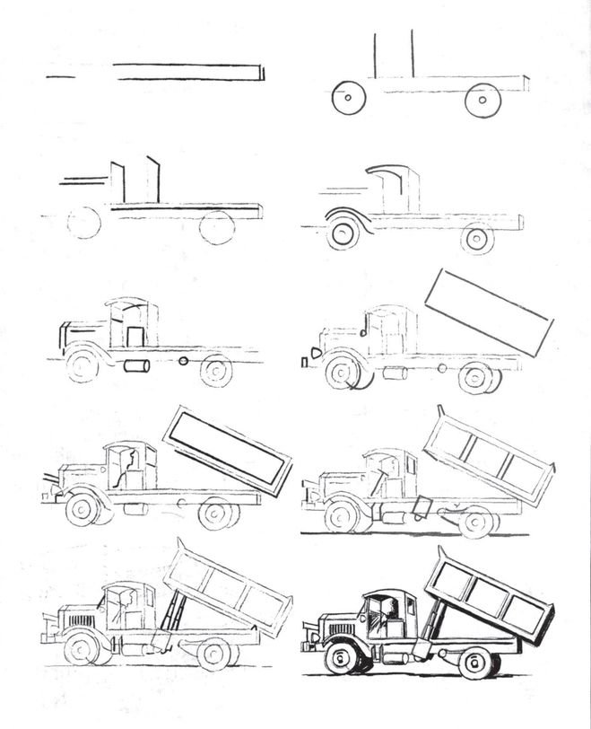 Поэтапное рисование грузовой машины