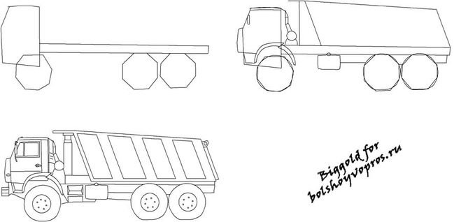 ![Как рисовать КАМАЗ]()