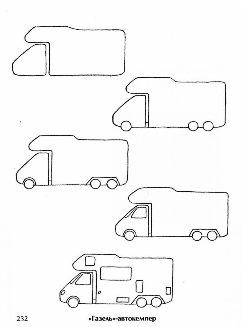 ![Поэтапное рисование транспорта]()