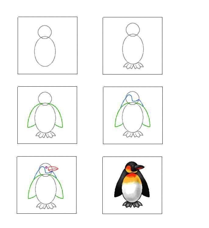 ![Схема рисования пингвина в подготовительной группе]()