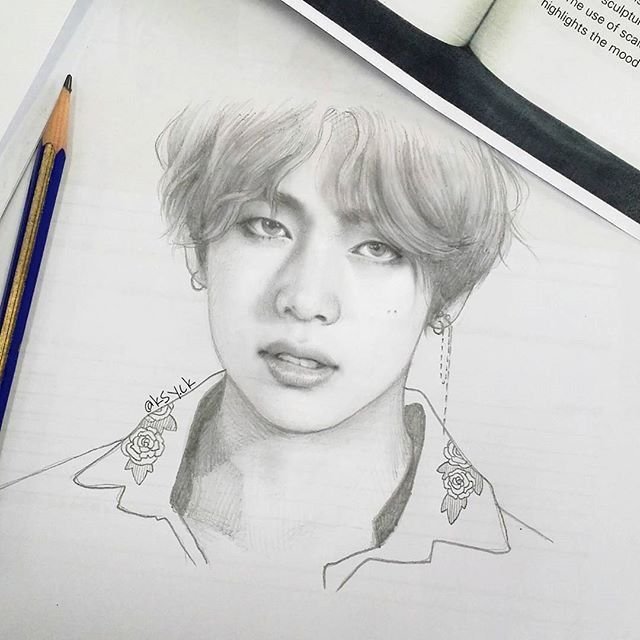 ![БТС карандашом Тэхен]()