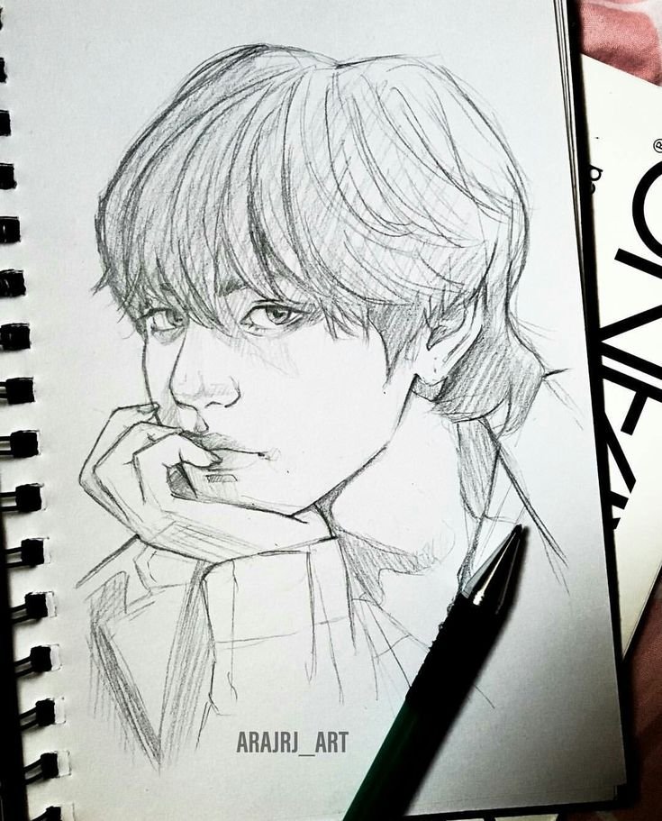 ![Тэхён БТС карандашом]()
