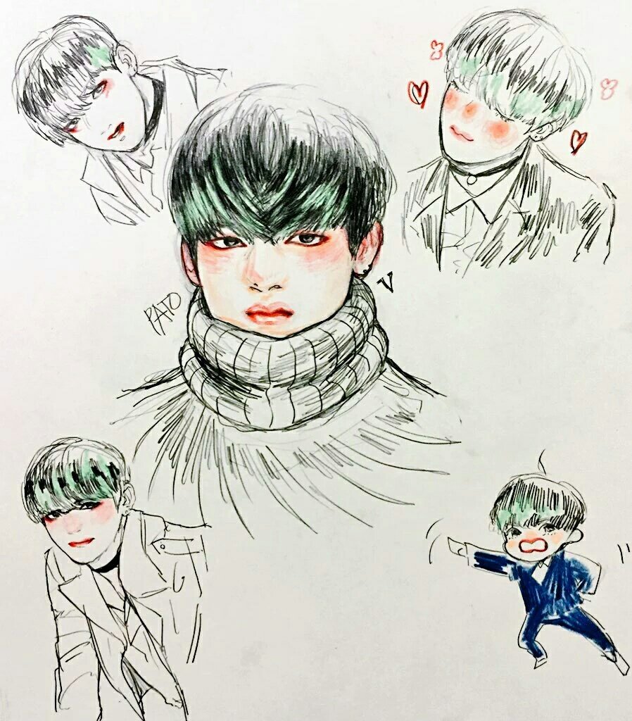 ![BTS карандашом Тэхен]()