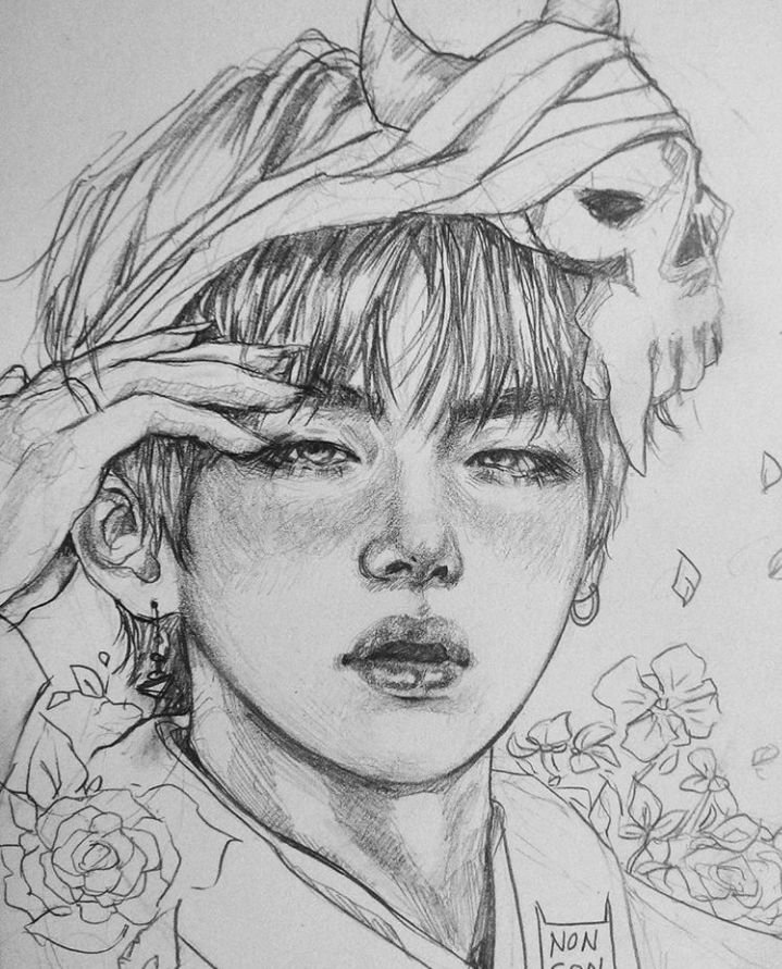 ![Тэхен рисунок карандашом]()