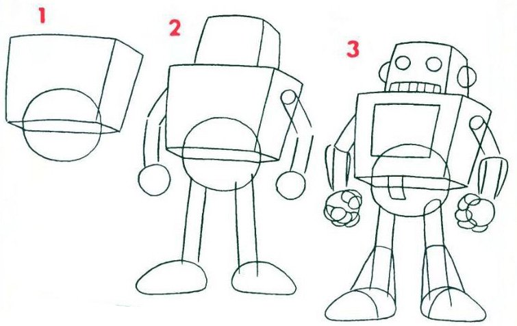 Поэтапное рисование робота