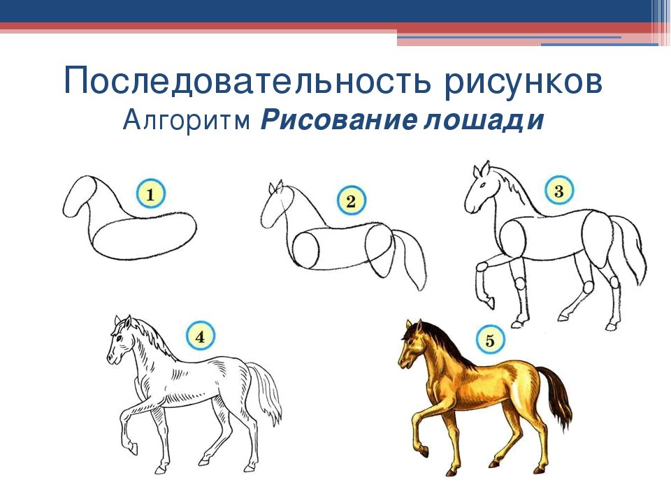 Последовательность рисования лошади для дошкольников