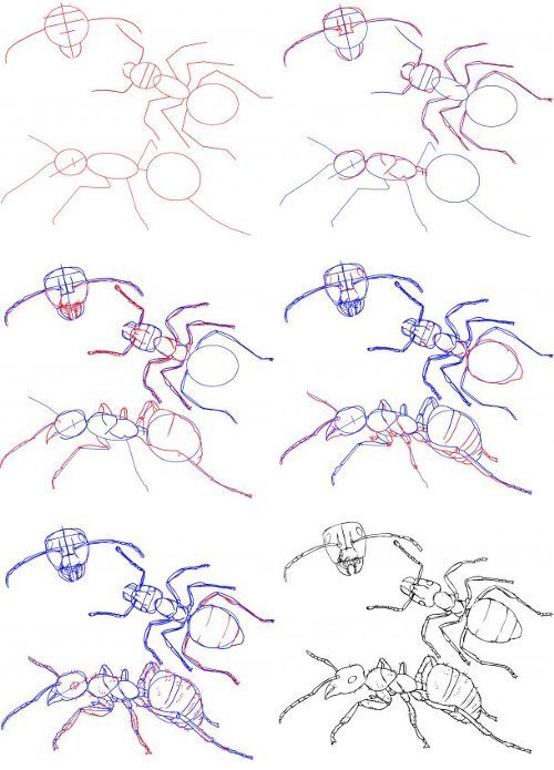 ![Наброски муравья карандашом пошагово]()