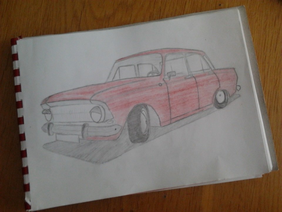 ![Рисунок машины Москвич карандашом]()