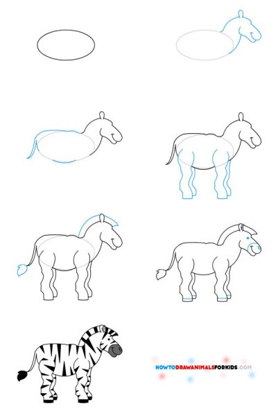 Поэтапное рисование зебры для дошкольников