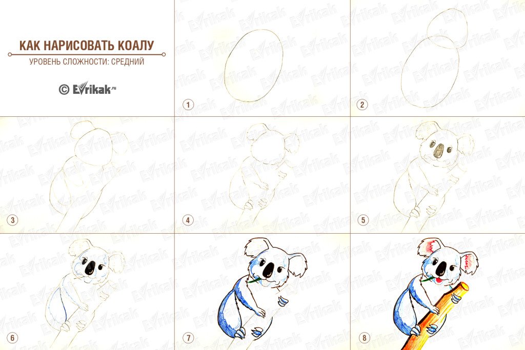 Пошаговый рисунок коалы