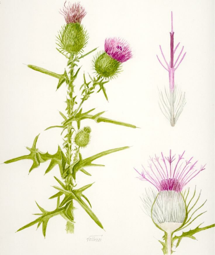 ![Чертополох рисунок ботаника]()
