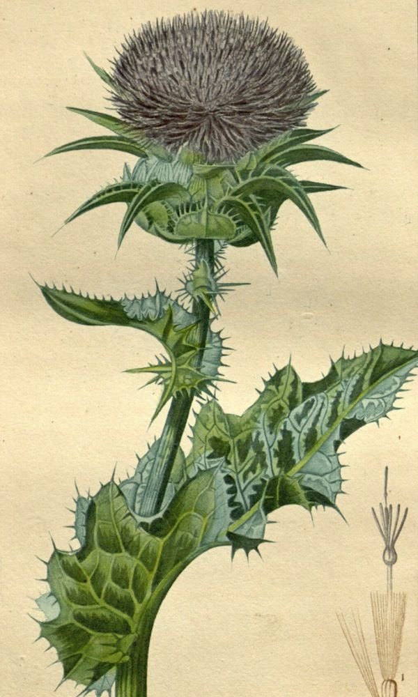 Чертополох Ботаническая иллюстрация