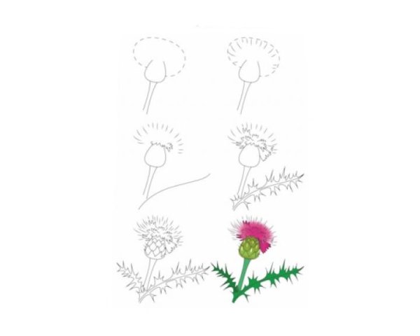 ![Как поэтапно нарисовать растение чертополох]()