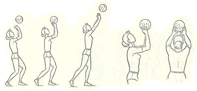 ![Прием и передача мяча сверху двумя руками волейбол]()