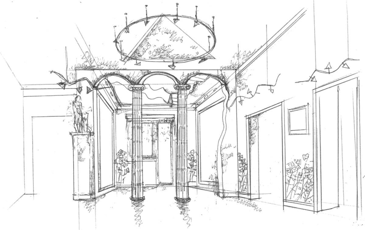 Эскиз интерьера прихожей карандашом