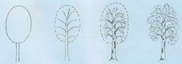 ![Пошаговое рисование дерева]()