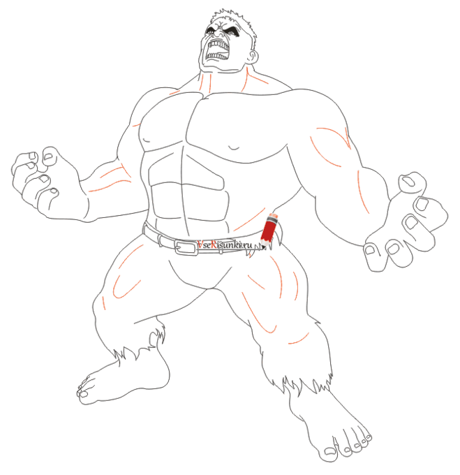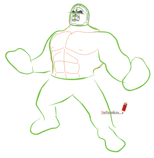 ![Поэтапный рисунок Халка]()
