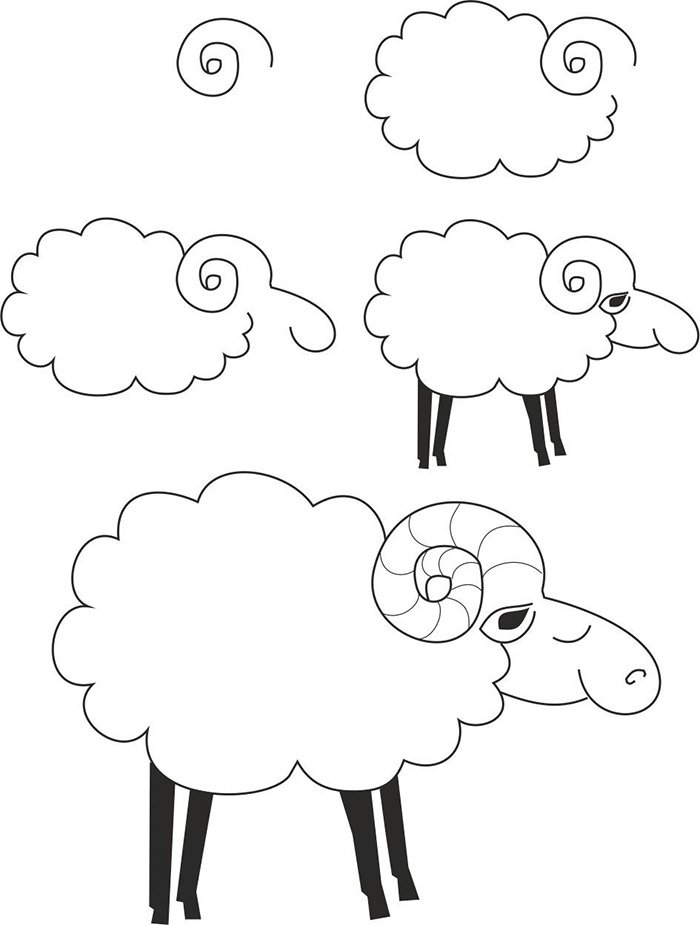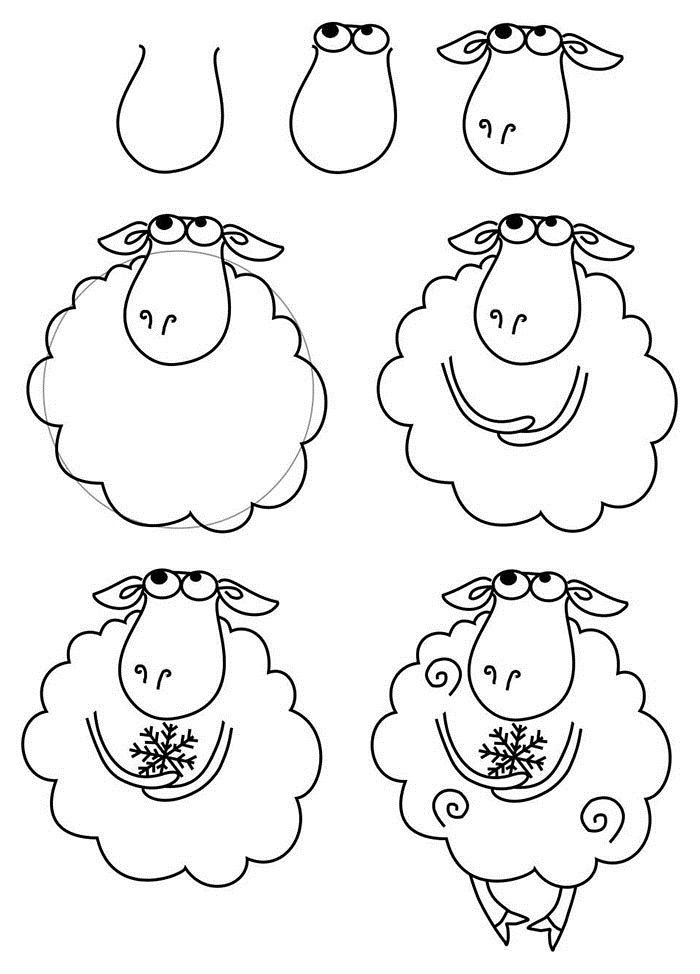 ![Овца поэтапное рисование]()