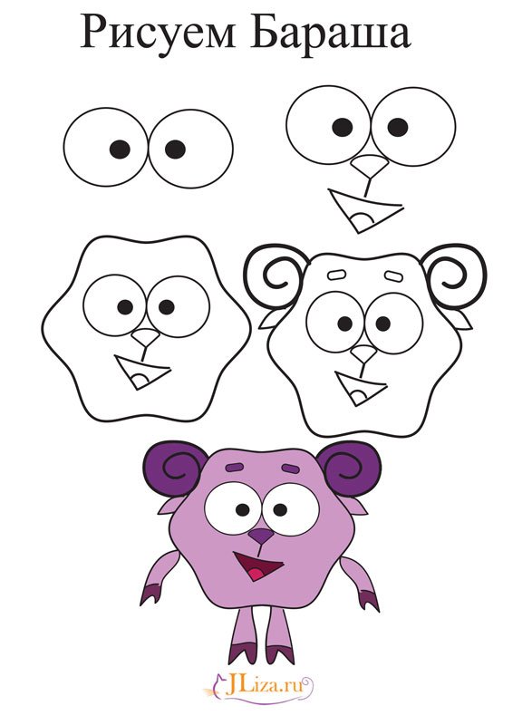 Легкие рисунки карандашом для начинающих Бараша из смешариков