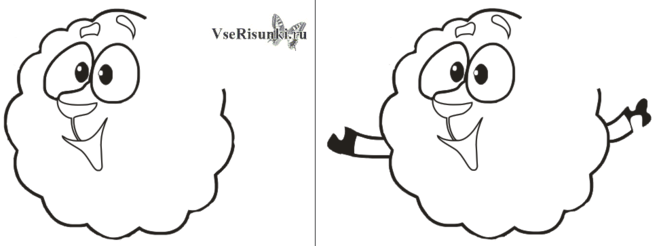 ![Схема рисования овечки для детей]()