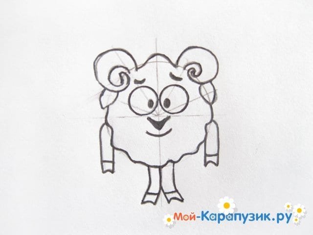 Нарисовать Бараша из смешариков поэтапно