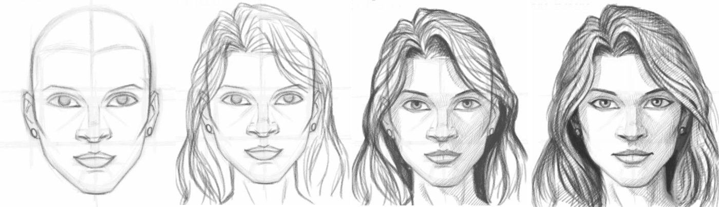 ![Поэтапное рисование лица]()