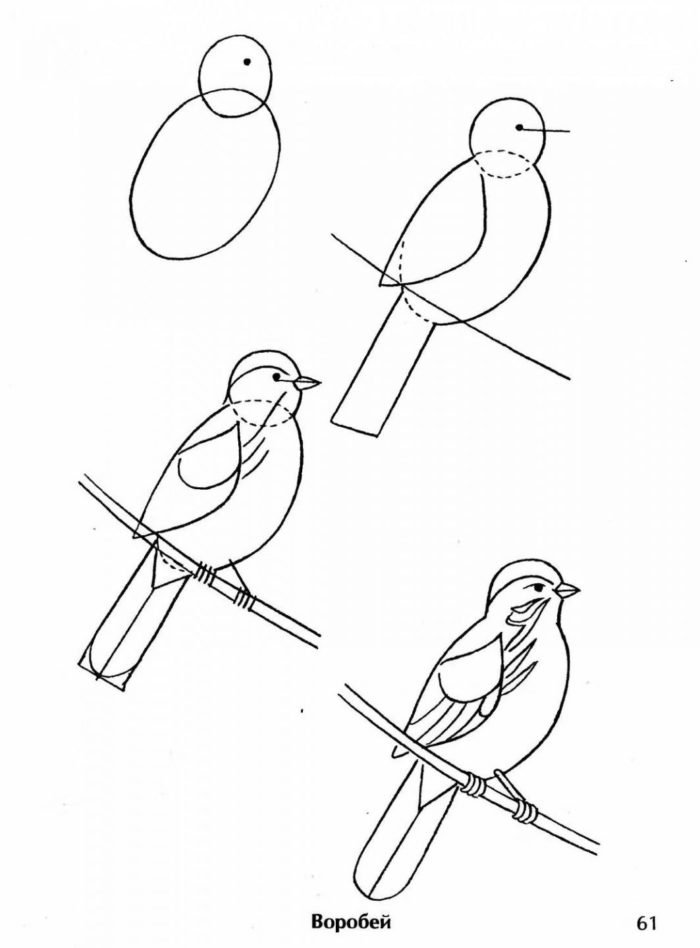Последовательность рисования скворца