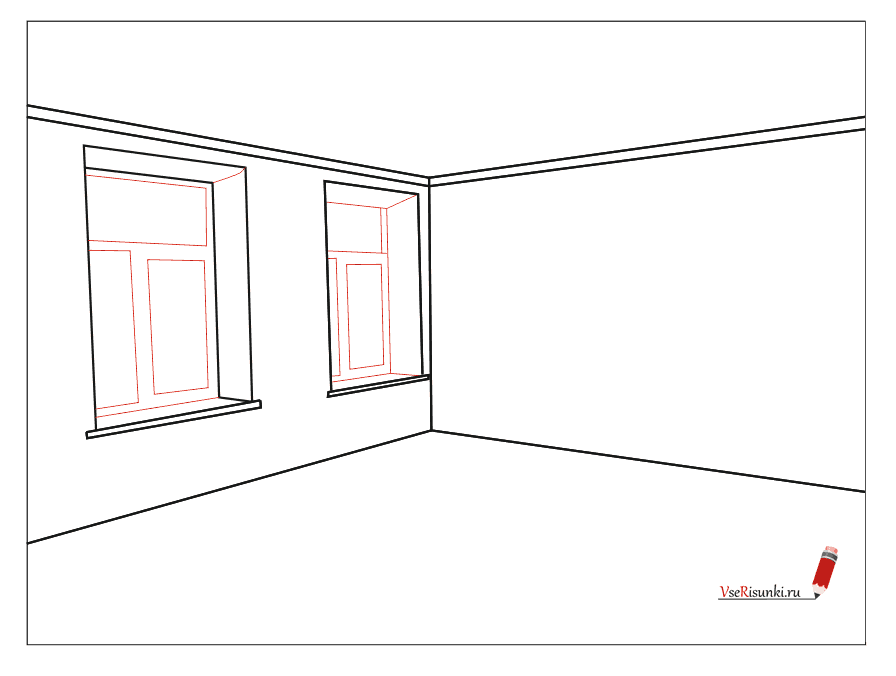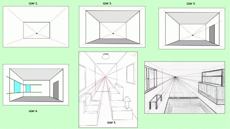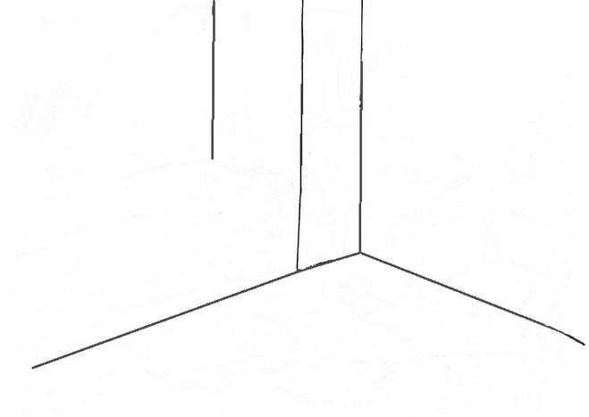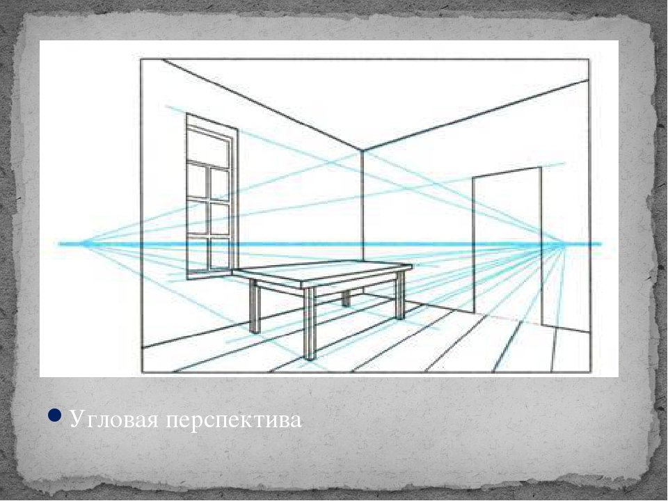 ![Угловая перспектива интерьера Начертательная геометрия]()