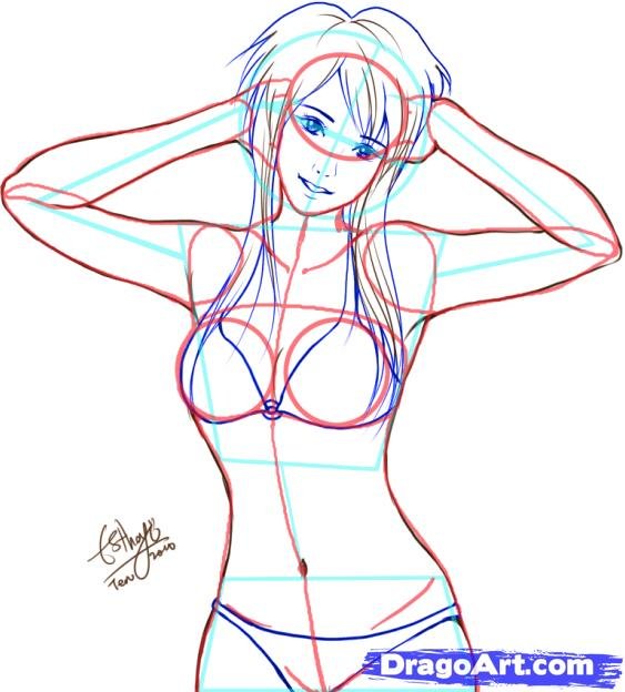 ![Рисунок девушки в купальнике лёгкий для детей]()