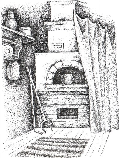 Рисунок печи в русской избе