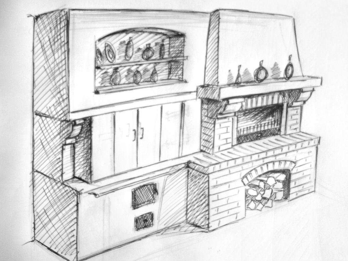 ![Русская печь эскиз]()
