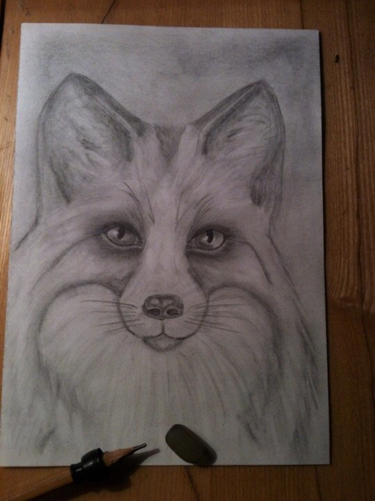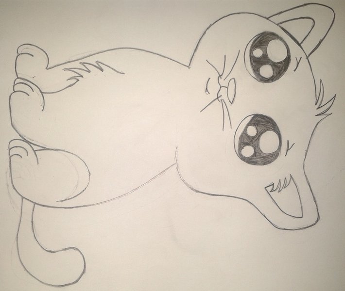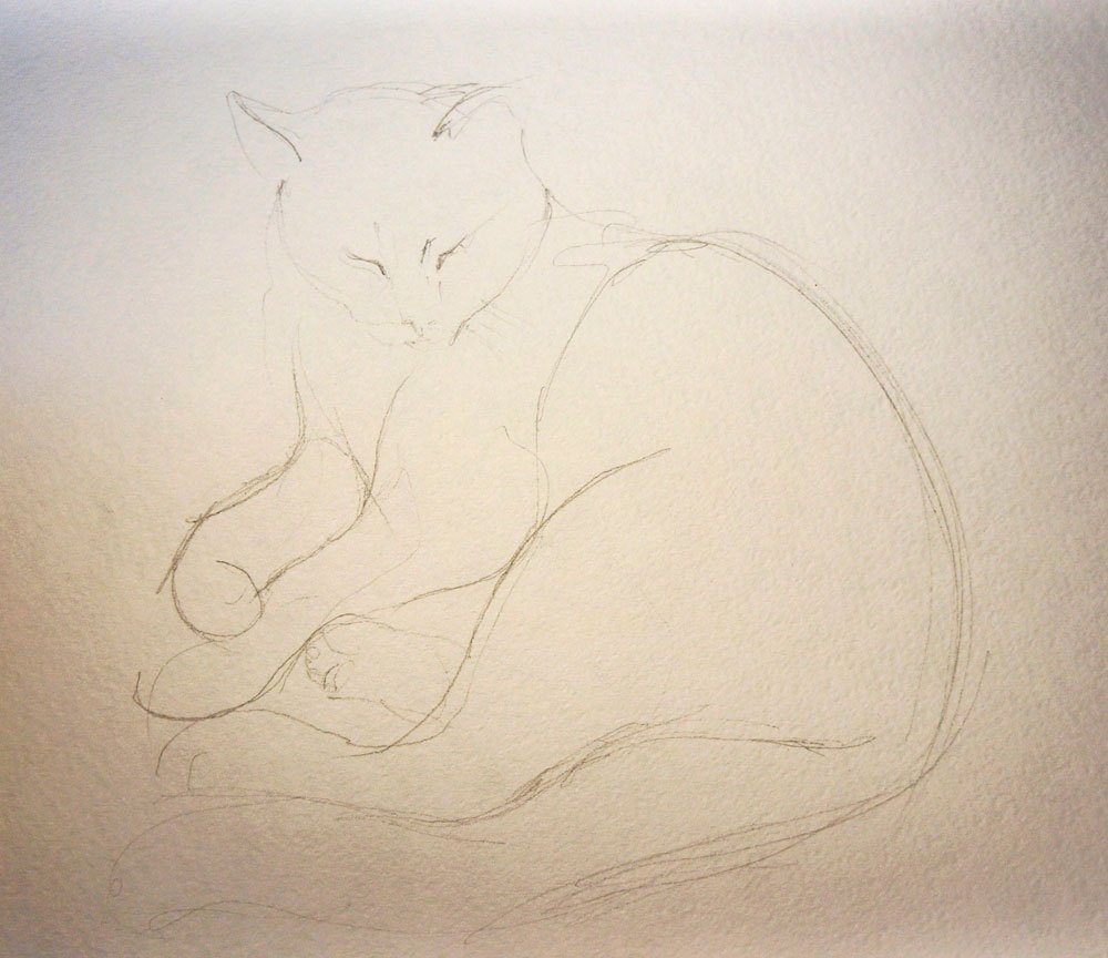 ![Рисунок котика карандашом на листе]()