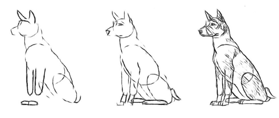 ![Собака сидит зарисовка]()