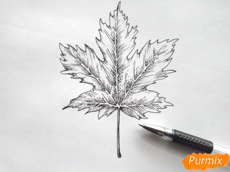 ![Лист клёна рисунок карандашом поэтапно]()