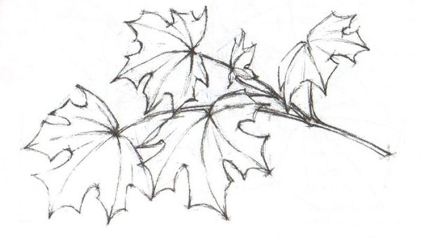 ![Лист клена карандашом]()
