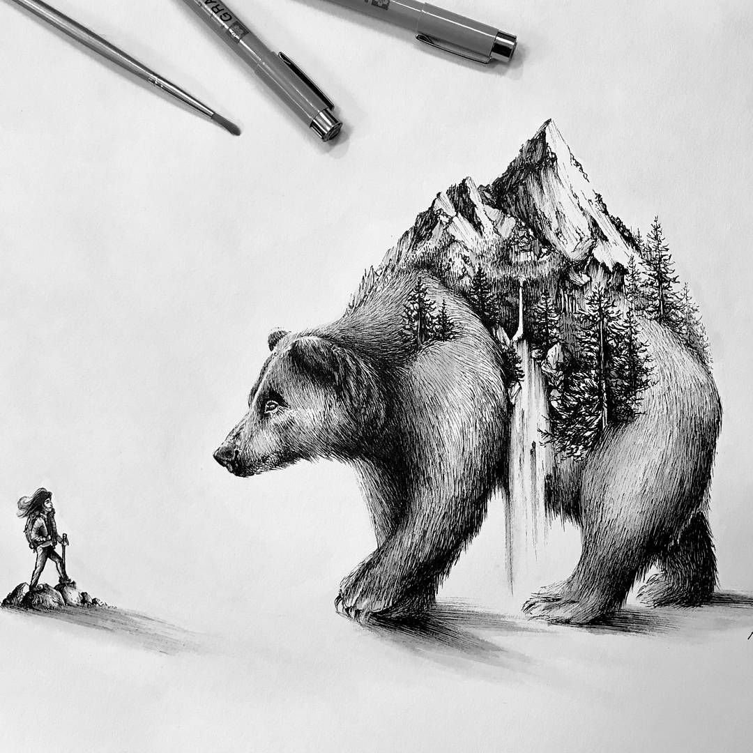 ![Медведь карандашом]()