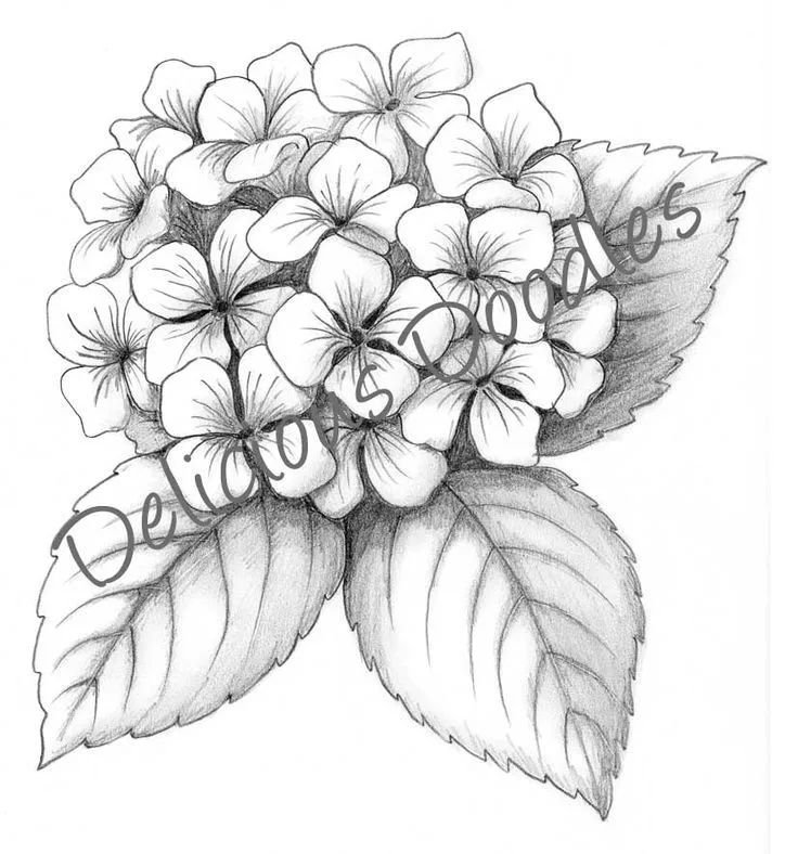 ![Куст гортензии скетчинг]()