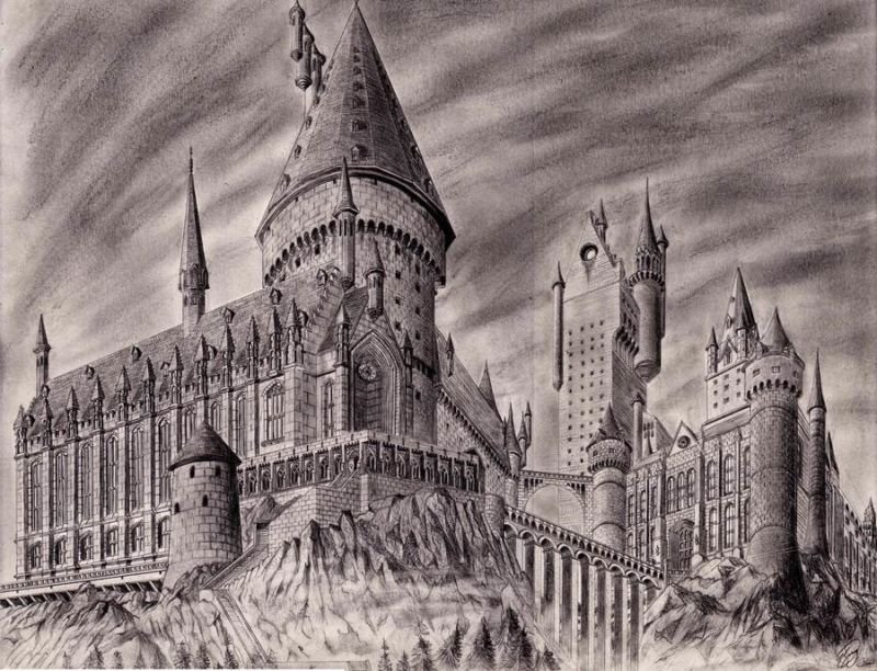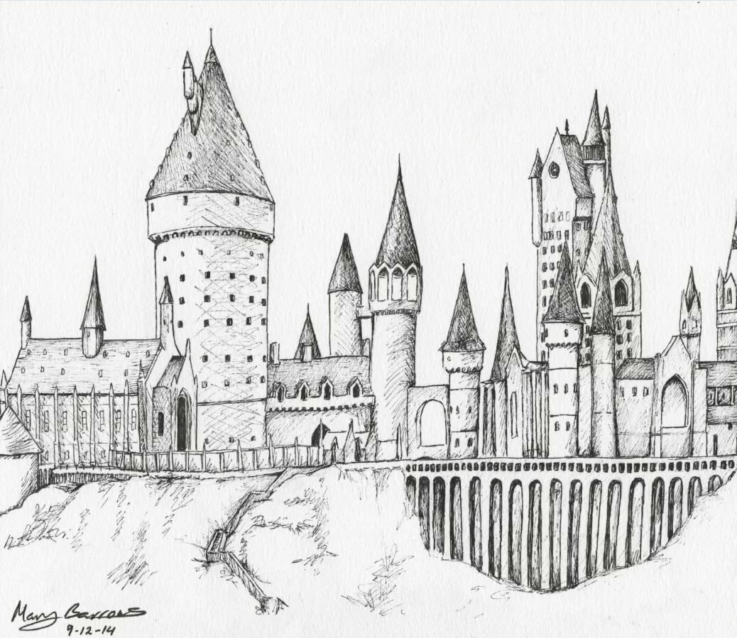 ![Раскраска Гарри Поттер замок Хогвартс]()
