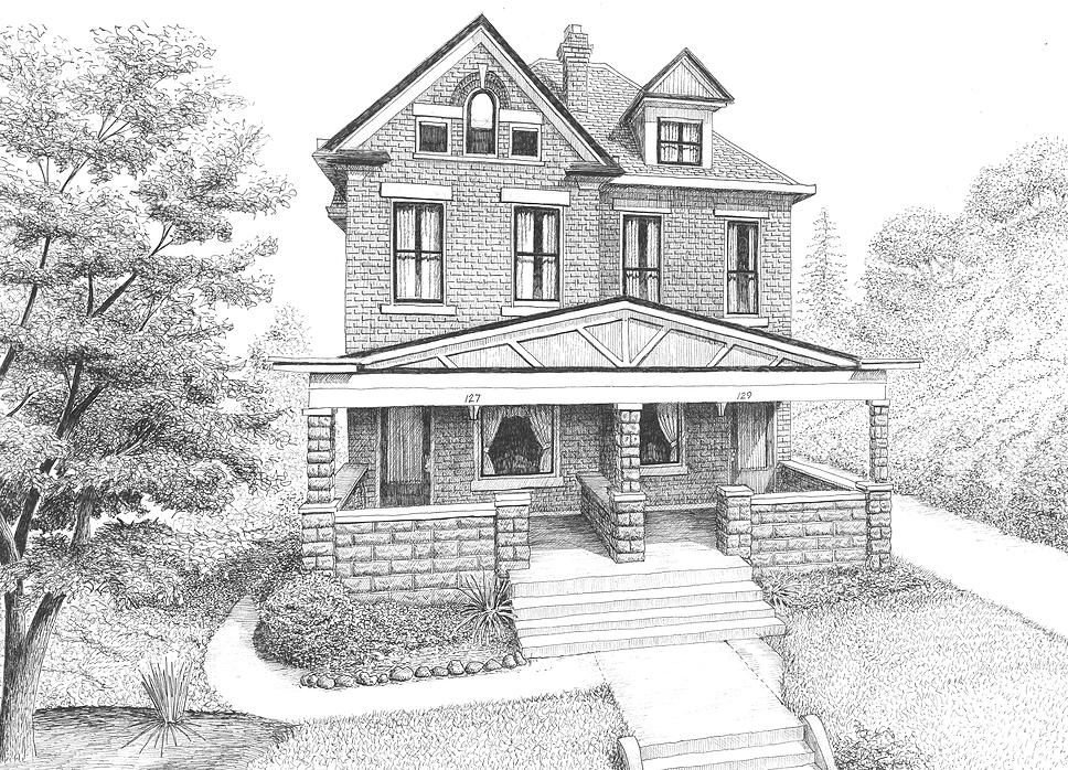 Двухэтажный дом карандашом