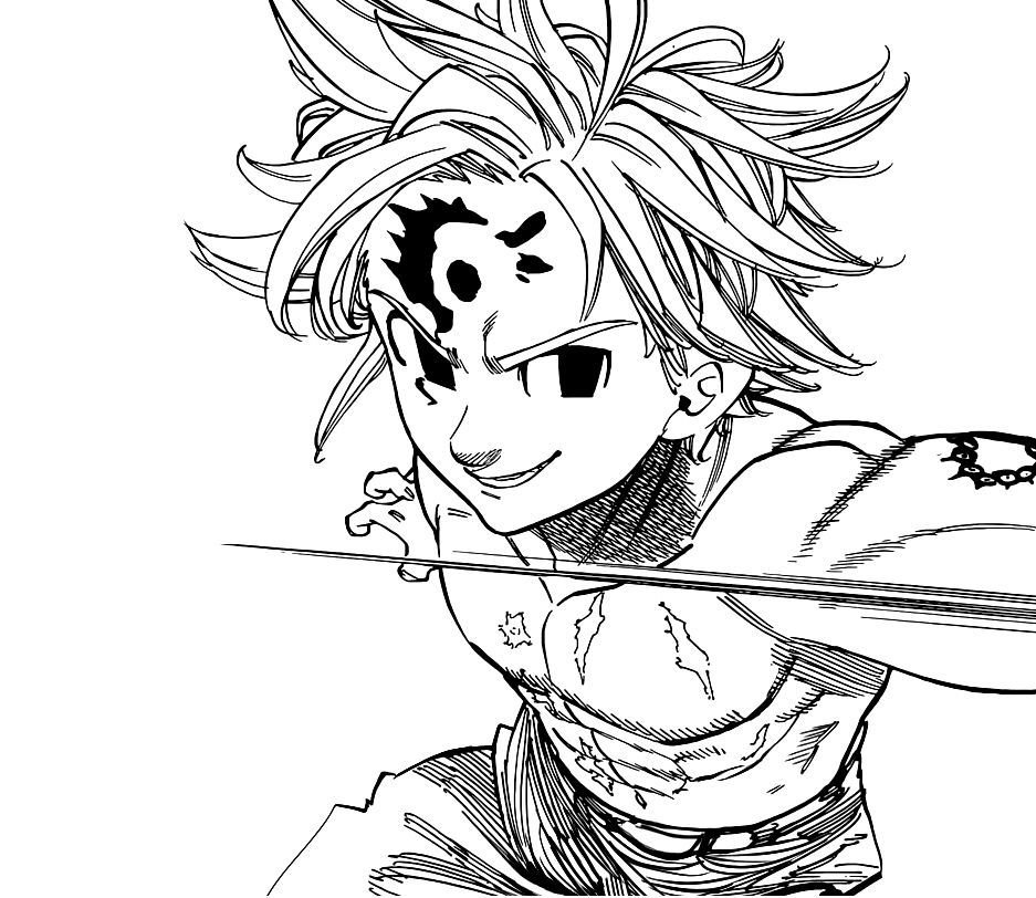 ![Семь смертных грехов раскраска Мелиодас]()