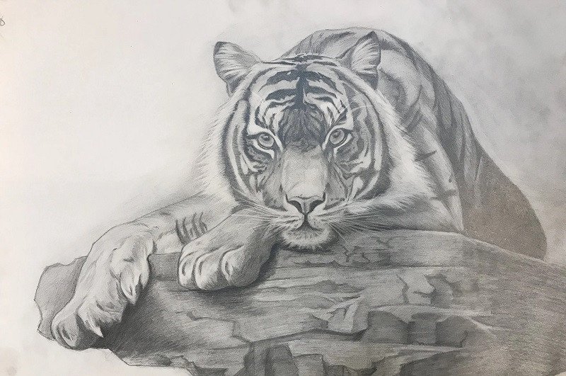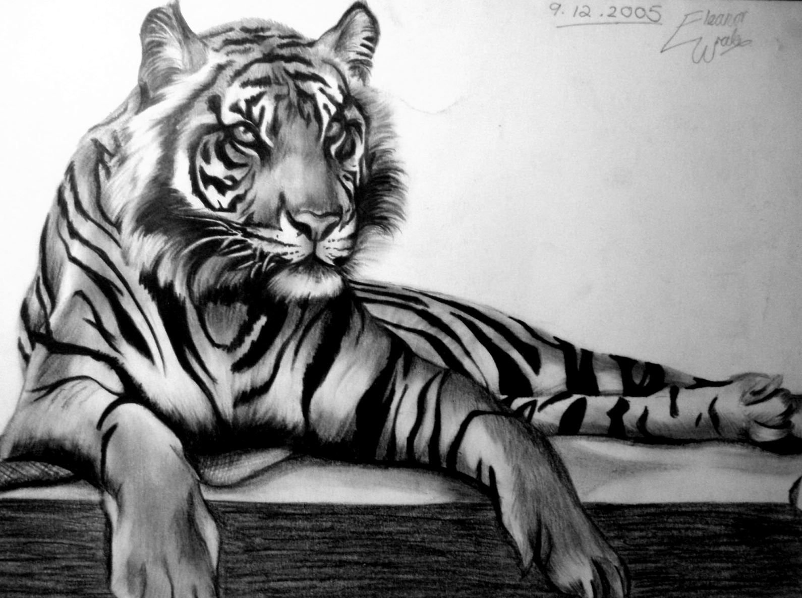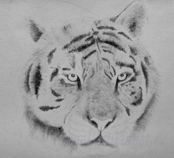![Рисунок тигра карандашом]()